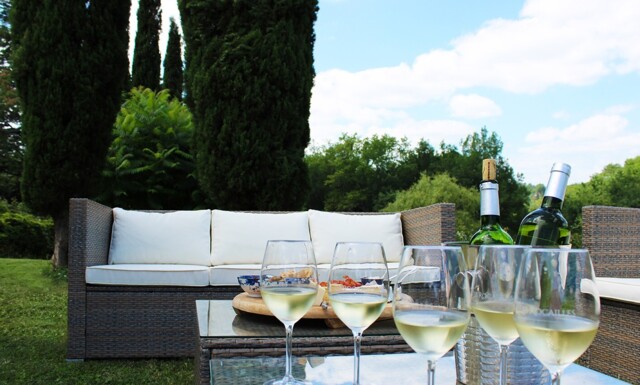 At the heart of our four-hectare estate stands a charming house dating back to 1694. We offer four comfortable guest rooms, each with a private bathroom, and a cozy gîte with two bedrooms, a fully equipped kitchen, and a private terrace. There’s a large swimming pool with a welcoming pool bar, and several quiet terraces scattered across the grounds – perfect for relaxing with a glass of wine.