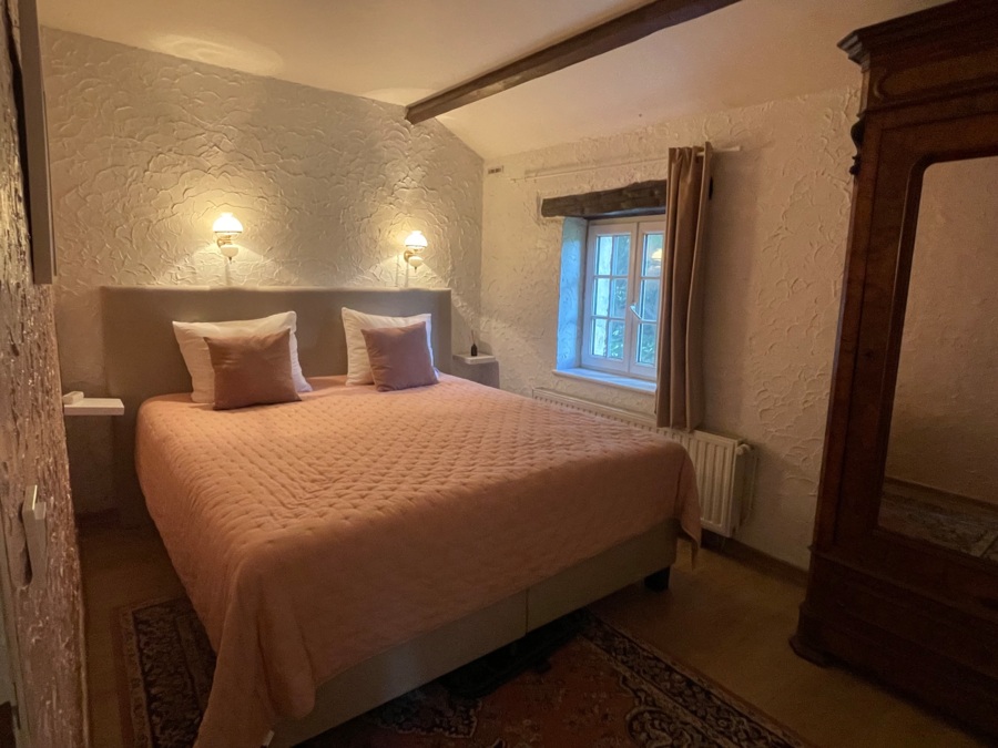 Kamer Renoir bevindt zich in de gîte en straalt rust en verfijning uit. De kamer is ingericht met een royaal kingsize bed (190x210 cm) en een grote kledingkast met spiegel.